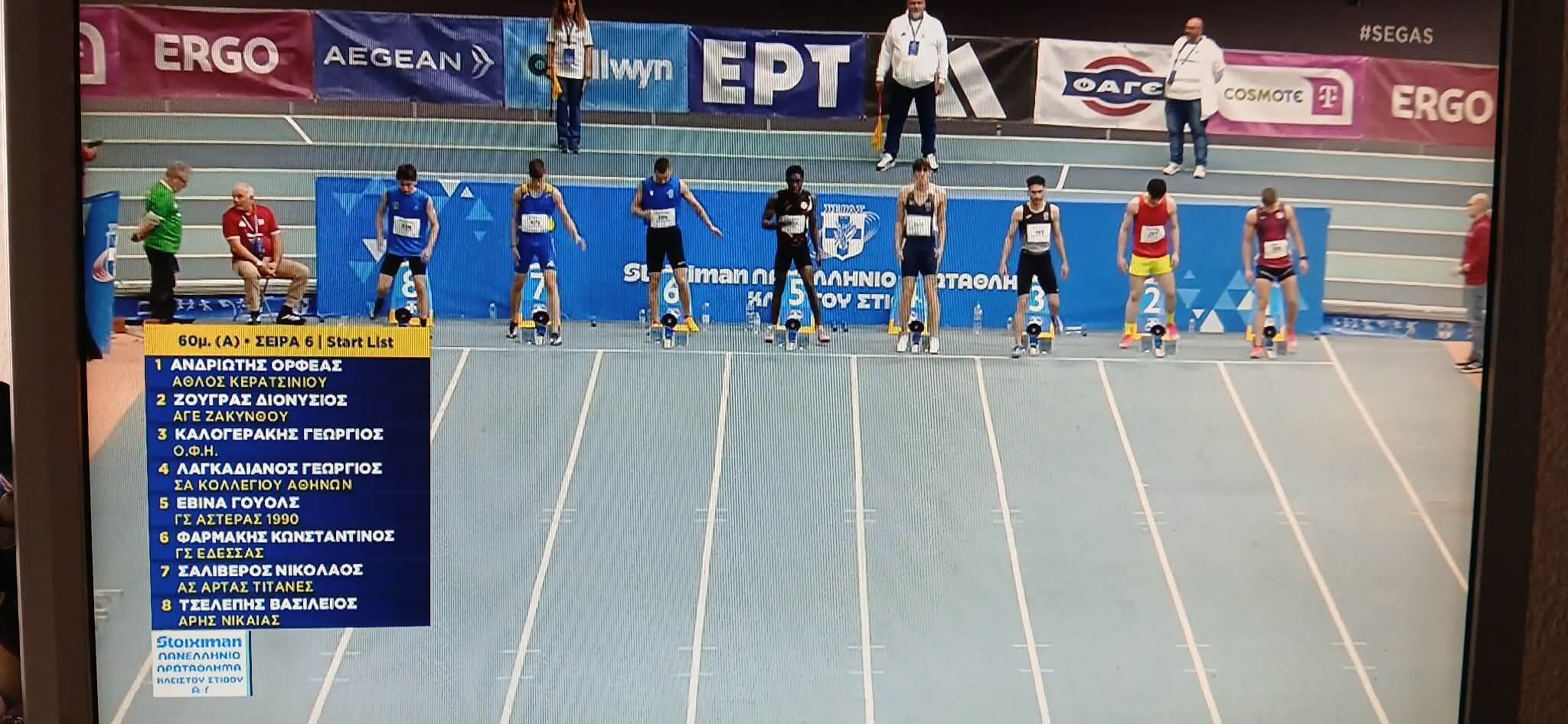 Ζούγρας Διονύσης: ήταν 36ος ανάμεσα σε 110 αθλητές στα 60μ Α με 7’’16. Πρωτοετής φοιτητής  στο ΤΕΦΑΑ Θεσσαλονίκης, ετοιμάζεται για τον μεγάλο στόχο της χρονιάς το ΠΠ Κ20 στα 100-200μ το καλοκαίρι.